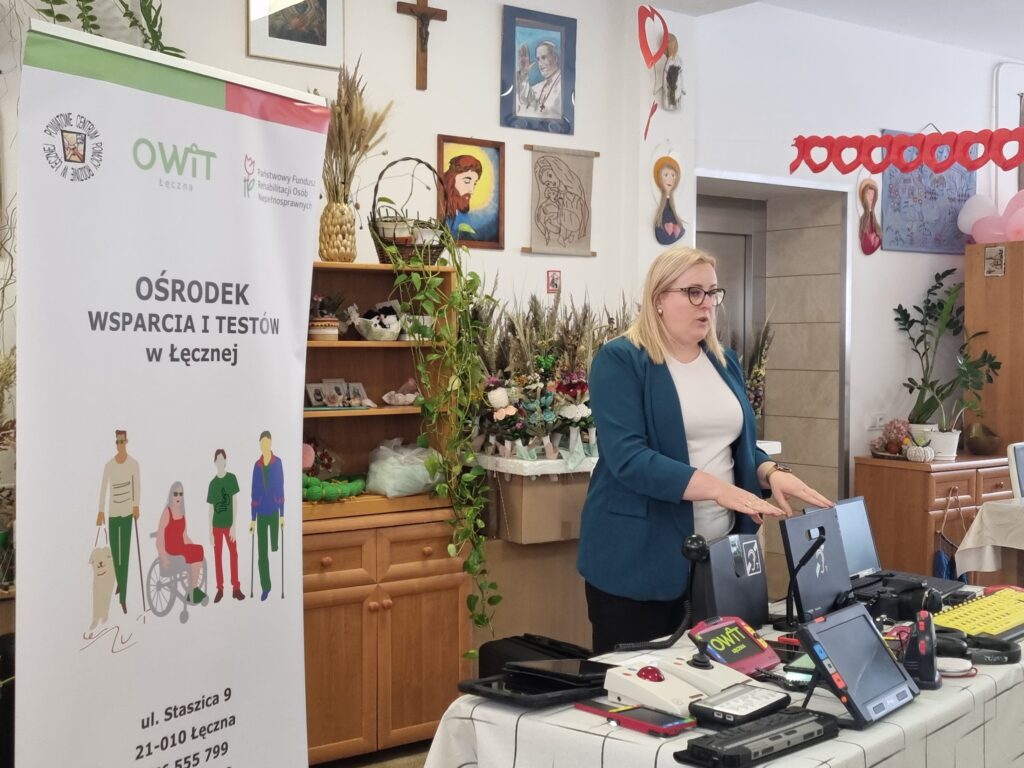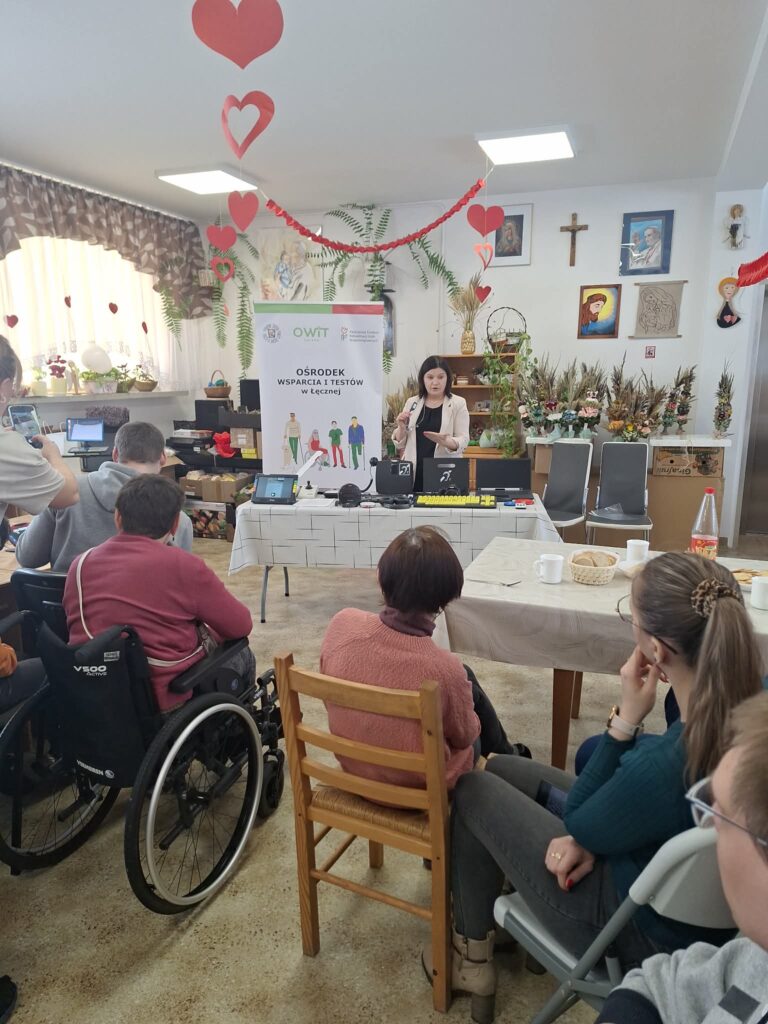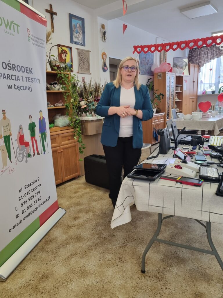 Podczas wizyty przedstawiliśmy działalność Ośrodka Wsparcia i Testów w Łęcznej, przybliżając zasady korzystania z bezpłatnych konsultacji oraz możliwości testowania technologii asystujących. Opowiedzieliśmy w jaki sposób nowoczesne rozwiązania mogą wspierać codzienne funkcjonowanie osób z niepełnosprawnościami.